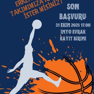 Yüksekokulumuz Erkek Basketbol Takımımıza katılmak için son başvuru tarihi 31.10.2025 Başvuru yeri: İMYO Evrak Kayıt Birimi‘ dir.