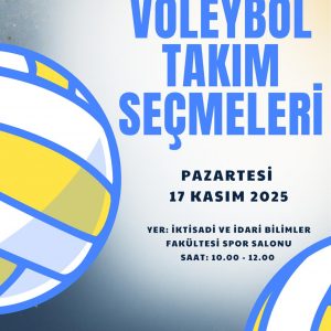 Yüksekokulumuz Kadın&Erkek Voleybol Takım Seçmeleri, İİBF Spor Salonu’nda gerçekleştirilecektir.