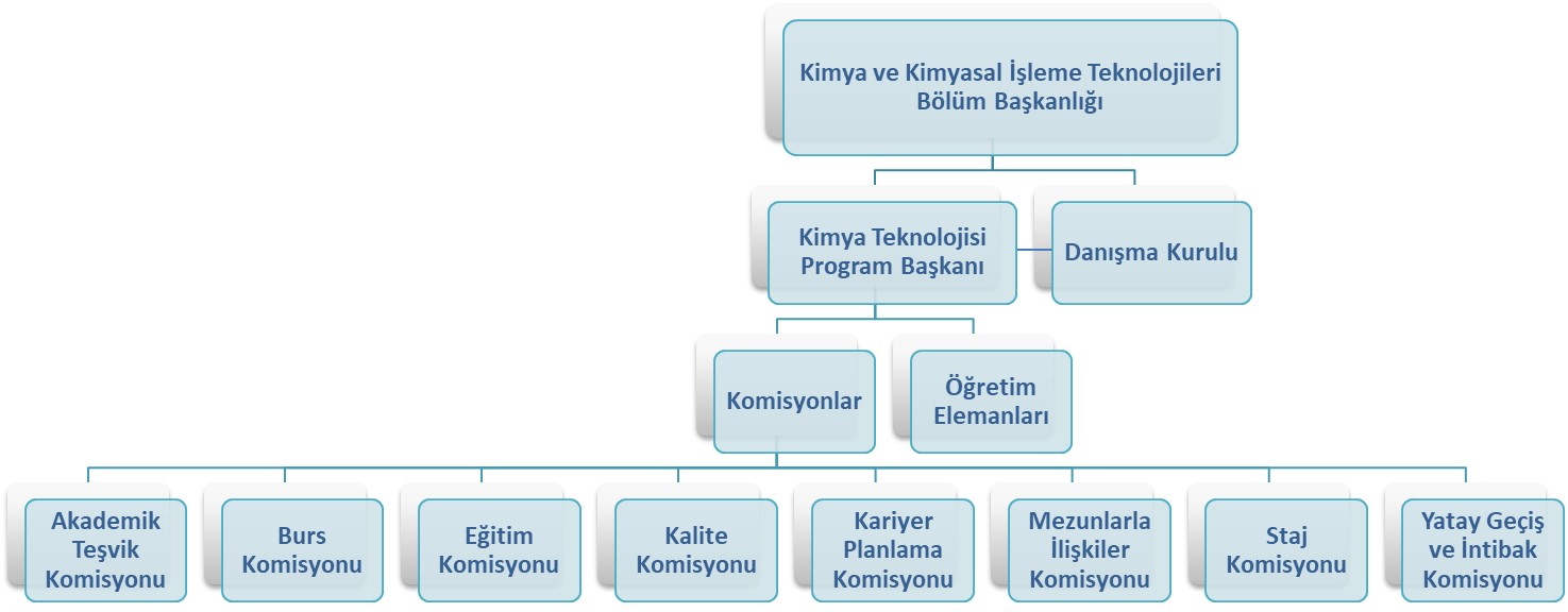 | Bölüm Hakkında: Kimya ve Kimyasal İşleme Teknolojileri Bölümü 2020 yılında İzmir Meslek Yükseokulunun Yükseköğretim Kurulu onayı ile mesleki alanda bölümleşmeye gitmesiyle kurulmuştur. Bölümün Akademik kadrosu beş öğretim elemanından oluşurken ve bölüm laboratuvarlarında çalışan bir kimya teknikeri de bulunmaktadır. Kimya ve Kimyasal İşleme Teknolojileri Bölümü bünyesinde sadece Kimya Teknolojisi Programı faaliyet göstermektedir. Kimya Teknolojisi Programı iki yıllık bir ön lisans programıdır. Program kapsamında öğrencilere kimya biliminin ve endüstriyel kimyanın temel kavramlarının öğretildiği teorik dersler anlatılmakta, laboratuvar uygulamalarında el becerilerinin geliştirilmesi sağlanmakta ve endüstriye dayalı öğretim (staj) dersi verilmektedir. Program öğrencileri aynı zamanda üniversitenin diğer bölümlerinden istedikleri seçmeli dersleri alarak kişisel gelişimlerine destek olabilmektedirler. Bölüm, düzenlediği çeşitli akademik ve bilimsel toplantılar, kariyer günleri, teknik geziler ve sosyal aktiviteler ile öğrencilerin gerek akademik gerekse sosyal becerilerine katkı sağlayacak fırsatlar sunmaktadır. Program mezunları kimya biliminin üretim, kalite-kontrol ve araştırmaya yönelik olarak kullanıldığı birçok sektörde (boya, deterjan, kozmetik, kağıt, rafineri-petrokimya, plastik, cam ve gıda gibi) saha, ar-ge ve kalite kontrol teknikeri olarak çalışabilmektedirler. Kimya ve Kimyasal İşleme Teknolojileri Bölümü Organizasyon Şeması Kimya ve Kimyasal İşleme Teknolojileri Bölümü Komisyonları için TIKLAYINIZ |